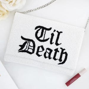 This bride clutch is perfect for the gothic bride! This beaded clutch is handmade to perfection and has an intricate pattern that gives a fun and bold look. This purse is large enough to all essentials. This is a must have for a every boutique looking to service brides that prefer this bold look!
