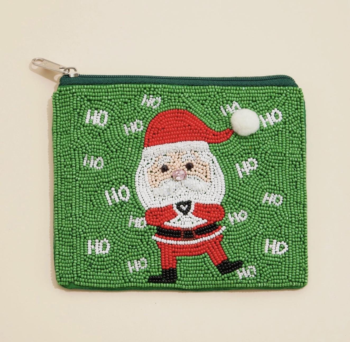 Christmas Santa Claus Seed Beaded Coin Pouch