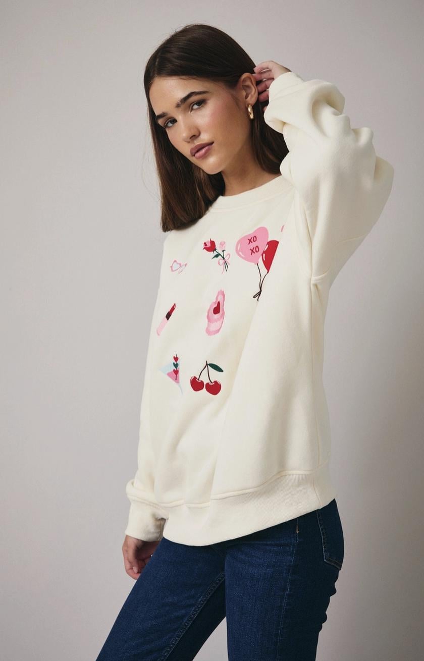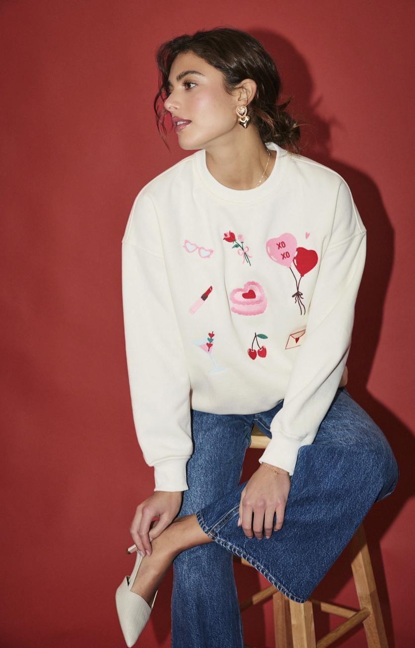 Add a touch of sparkle to your wardrobe with this Valentine's Day Crewneck. Featuring graphics on soft, cozy fabric, this stylish crewneck is perfect for casual wear or layering. A chic and comfy choice for everyday outfits, it makes a great gift for anyone who loves subtle yet trendy details. Ideal for those who appreciate both comfort and a bit of shine!