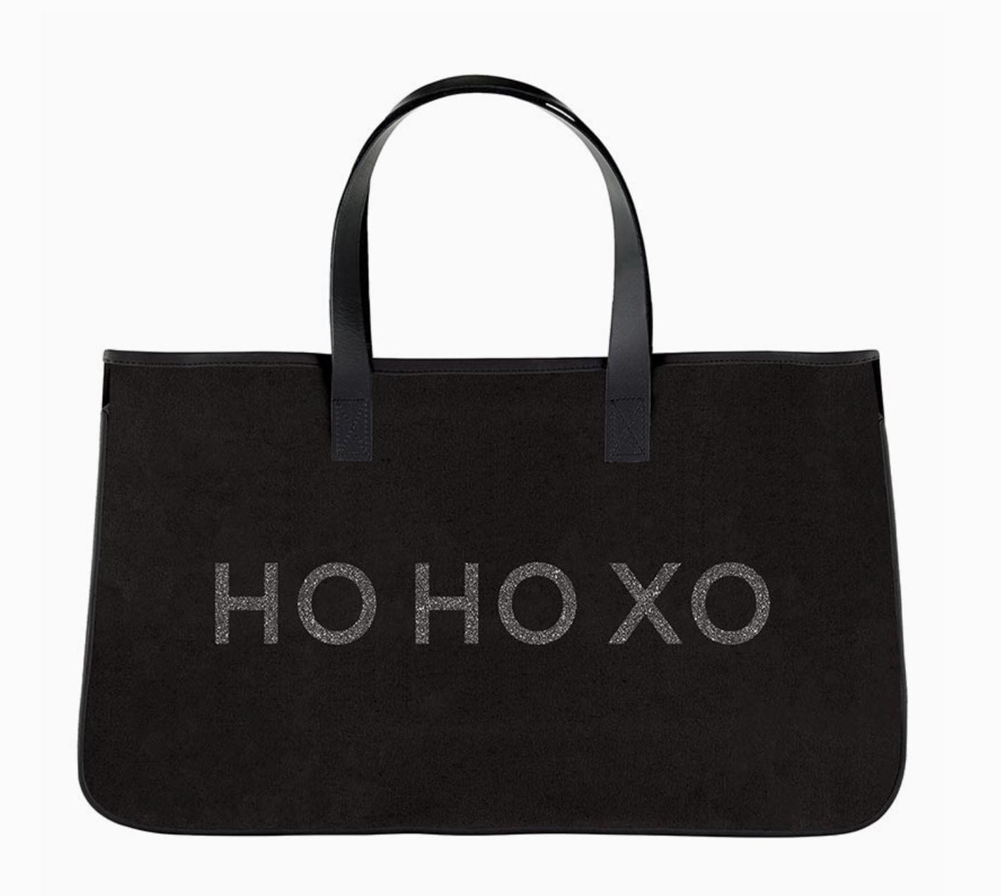 Modern black on black design with GLITTERED text! Genuine leather handles stitched to heavyweight canvas with an inside pocket for easy storage. Waterproof lining makes cleaning a breeze and protects against any accidental spills. The perfect bag to pack up Christmas gifts with or give to for anyone in your life!