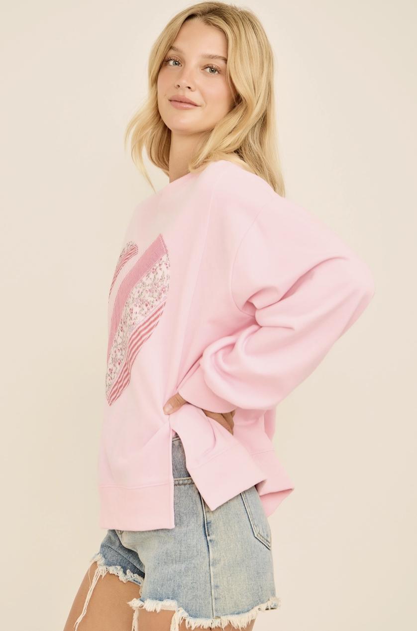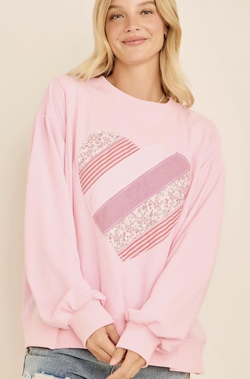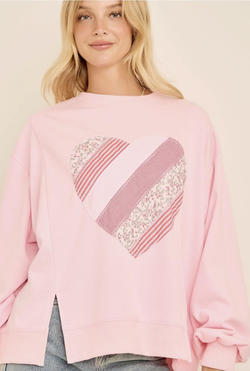 PREORDER Heart Patchwork Oversized Long Sleeve Top