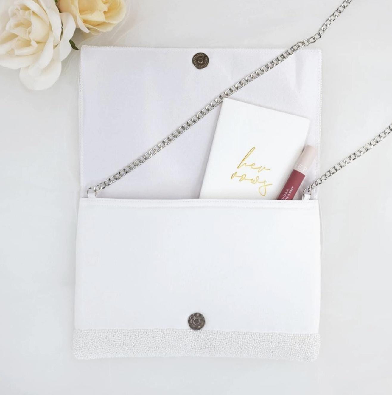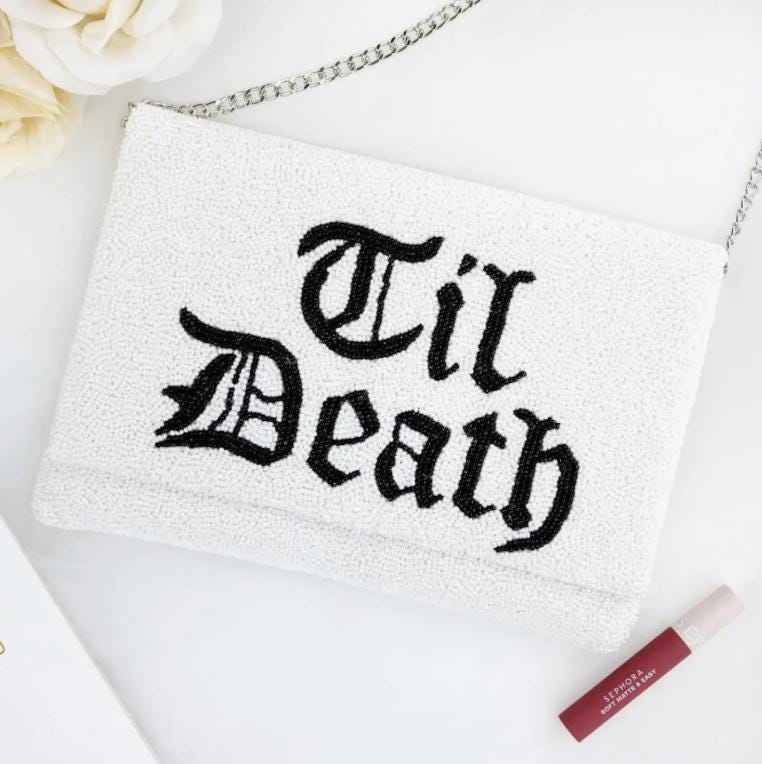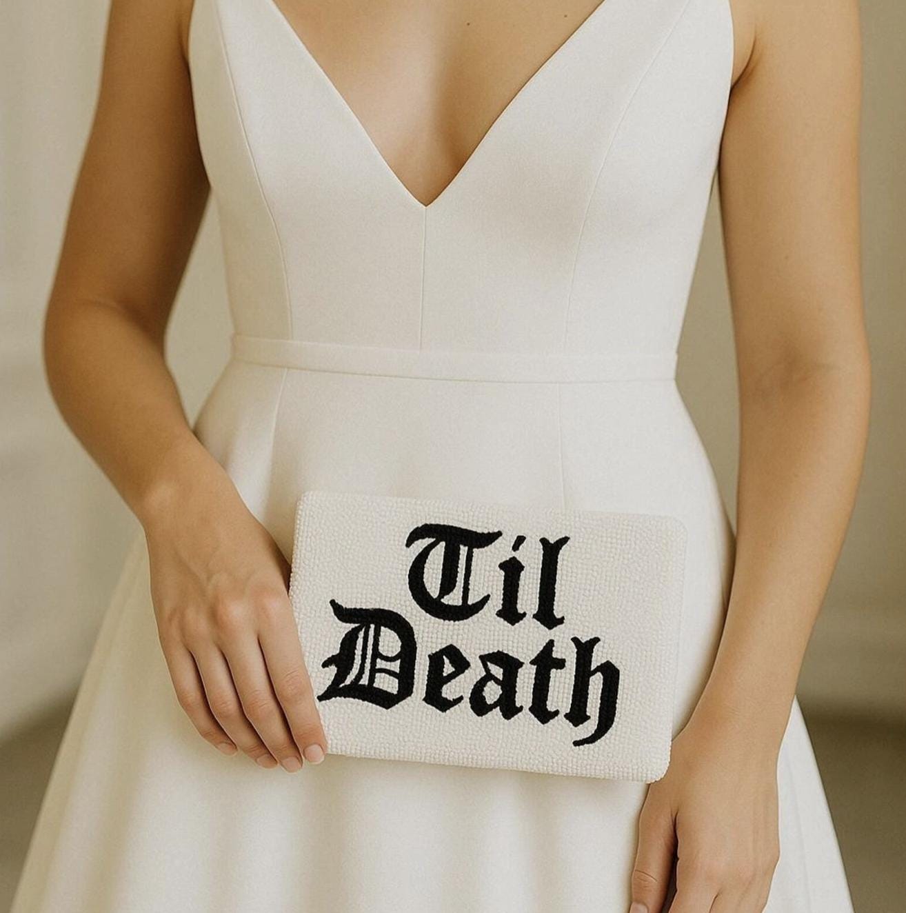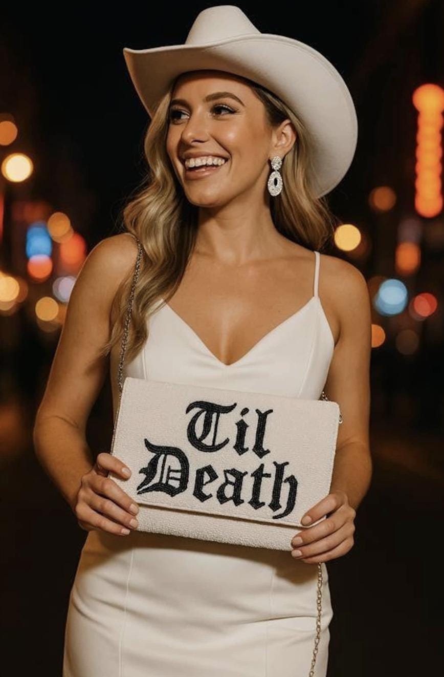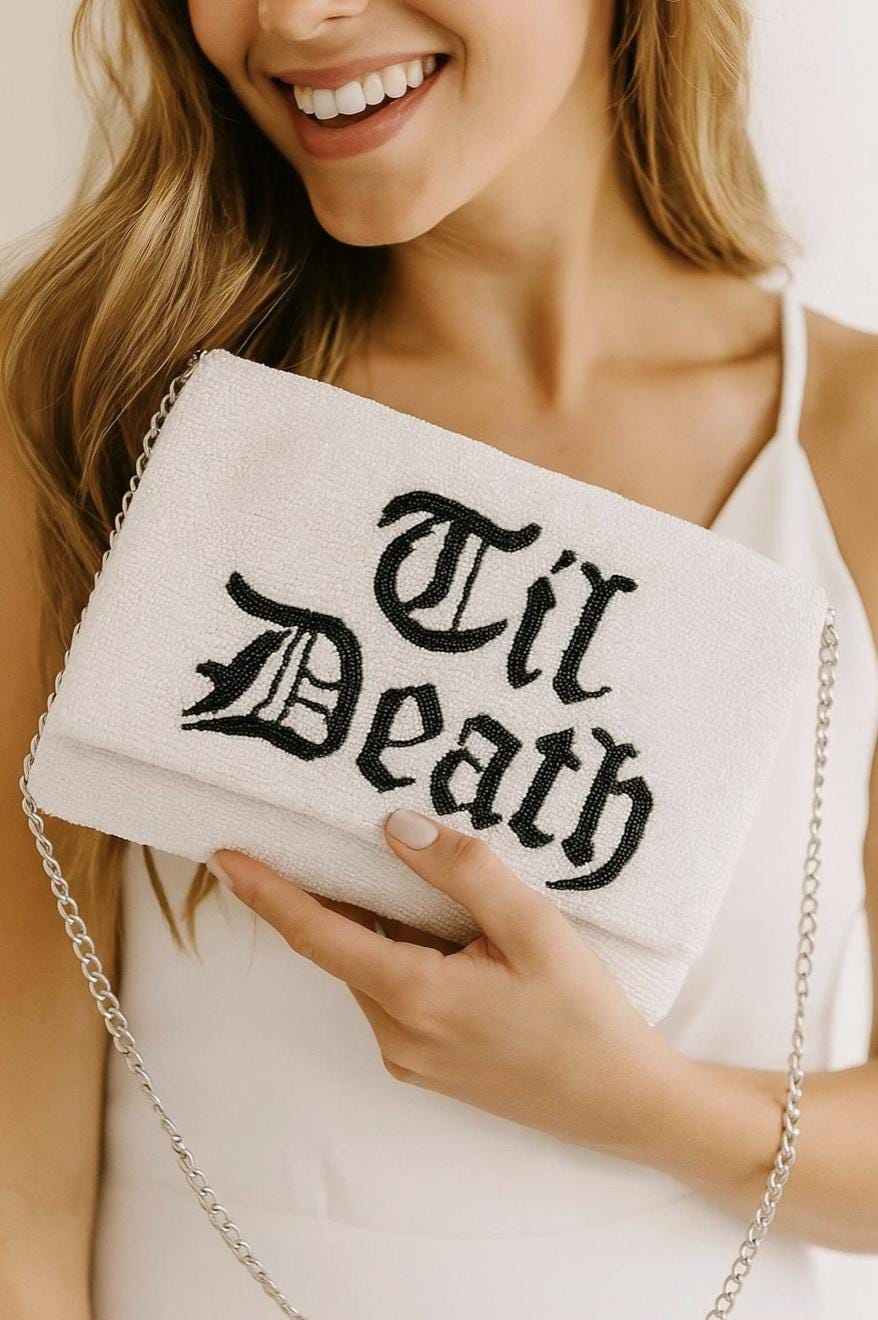 This bride clutch is perfect for the gothic bride! This beaded clutch is handmade to perfection and has an intricate pattern that gives a fun and bold look. This purse is large enough to all essentials. This is a must have for a every boutique looking to service brides that prefer this bold look!
